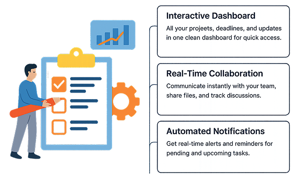 Powerful tools for assigning tasks, allocating resources, setting deadlines, and tracking job status — ensuring projects stay on schedule.
